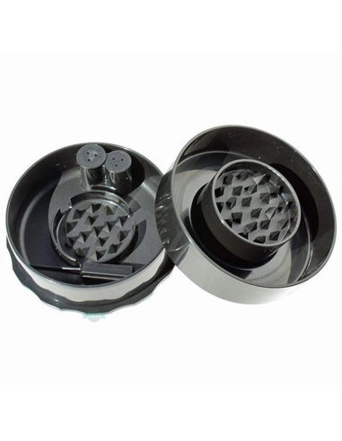 Dieser 40 mm-Grinder aus Kunststoff befindet sich im Inneren einer wasserdichten 80 mm-Box. Dadurch werden Gerüche reduziert. Er bietet genügend Platz für Ihre Blüten, die nun gemahlen werden können.
