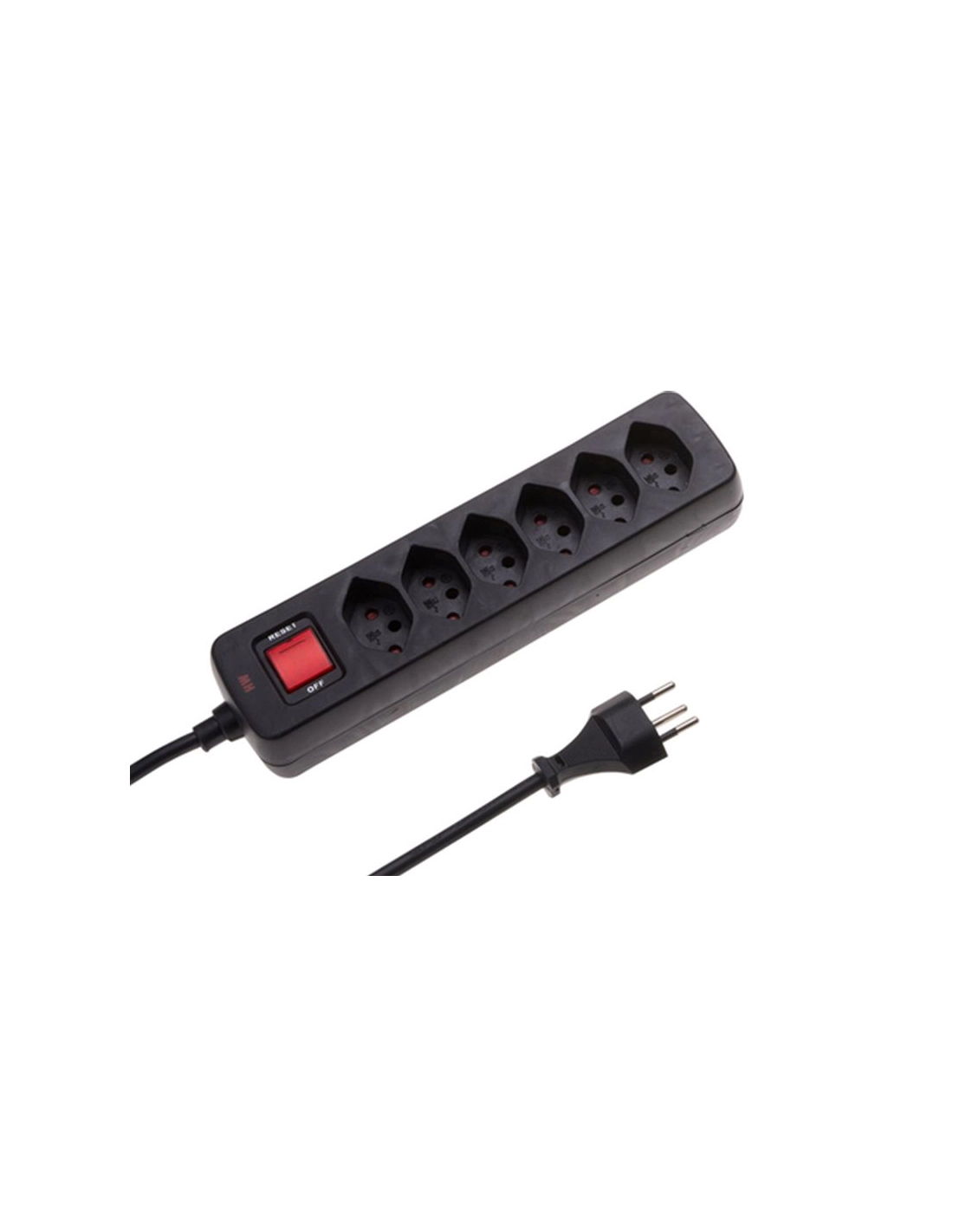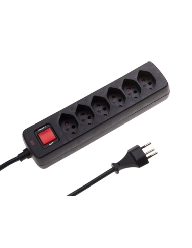 Steckdosenleiste (4 x T13) aus schwarzem Kunststoff, mit Schalter.