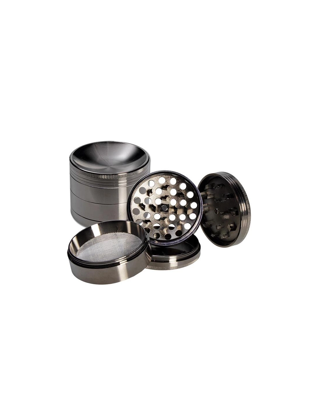 Die graue 4-teilige Mühle hat einen magnetisch schließenden Deckel der genauso wie das Mahlwerk konkav geformt ist, so dass das Mahlgut noch besser in die Siebkammer fällt. Dank des mitgelieferten Schabers kann das feine Mahlgut einfach aus der Bodenkammer entfernt und umgefüllt werden.