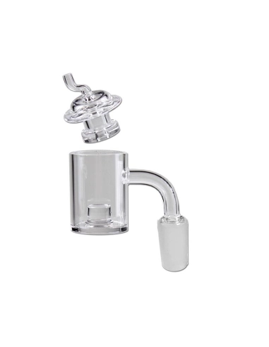 Das Dabbing-Set in der schönen Metalldose enthält einen XXL-Banger und einen passenden Carb Cap (Rauchfänger) aus sehr hitzebeständigem Glas. Wenn man jetzt noch eine Bong mit passendem Schliff, einen Dabber, einen Gasbrenner und – natürlich - das entsprechende Konzentrat zur Hand hat, kann man sofort mit dem Dabben loslegen.