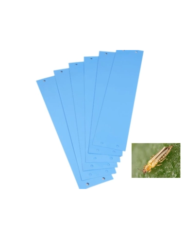 Mit den giftfreien, effizienten Klebefallen mit blauer Lockfarbe kann ein Thripsbefall im Gewächshaus, Wintergarten, bei Zimmerpflanzen und im Aussenbereich überwacht bzw. reduziert werden.