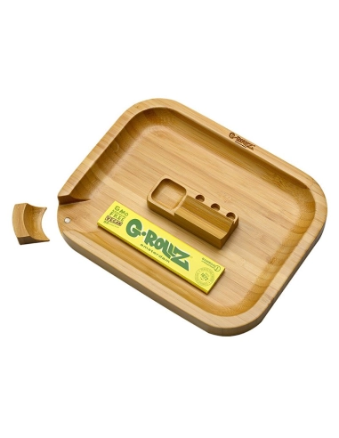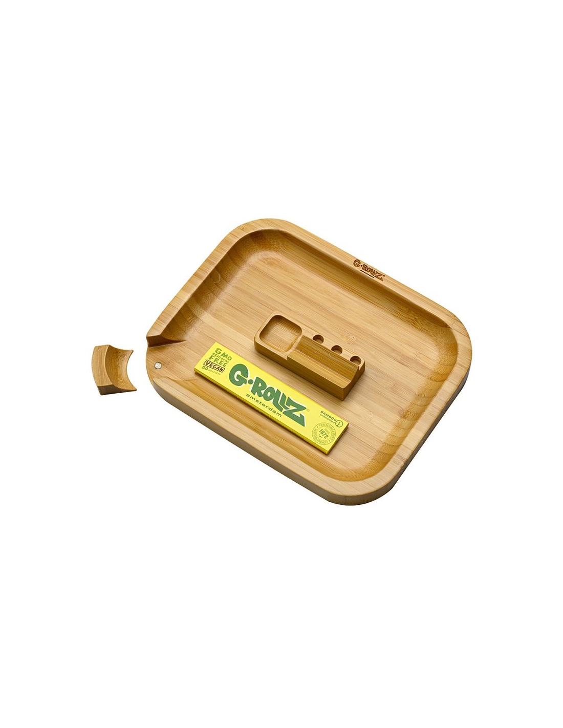 G Rollz Tablett aus hochwertigem Bambus mit einer Größe von 20 x 16 cm und einem magnetischen Deckel, mit dem du es wieder verschließen kannst.