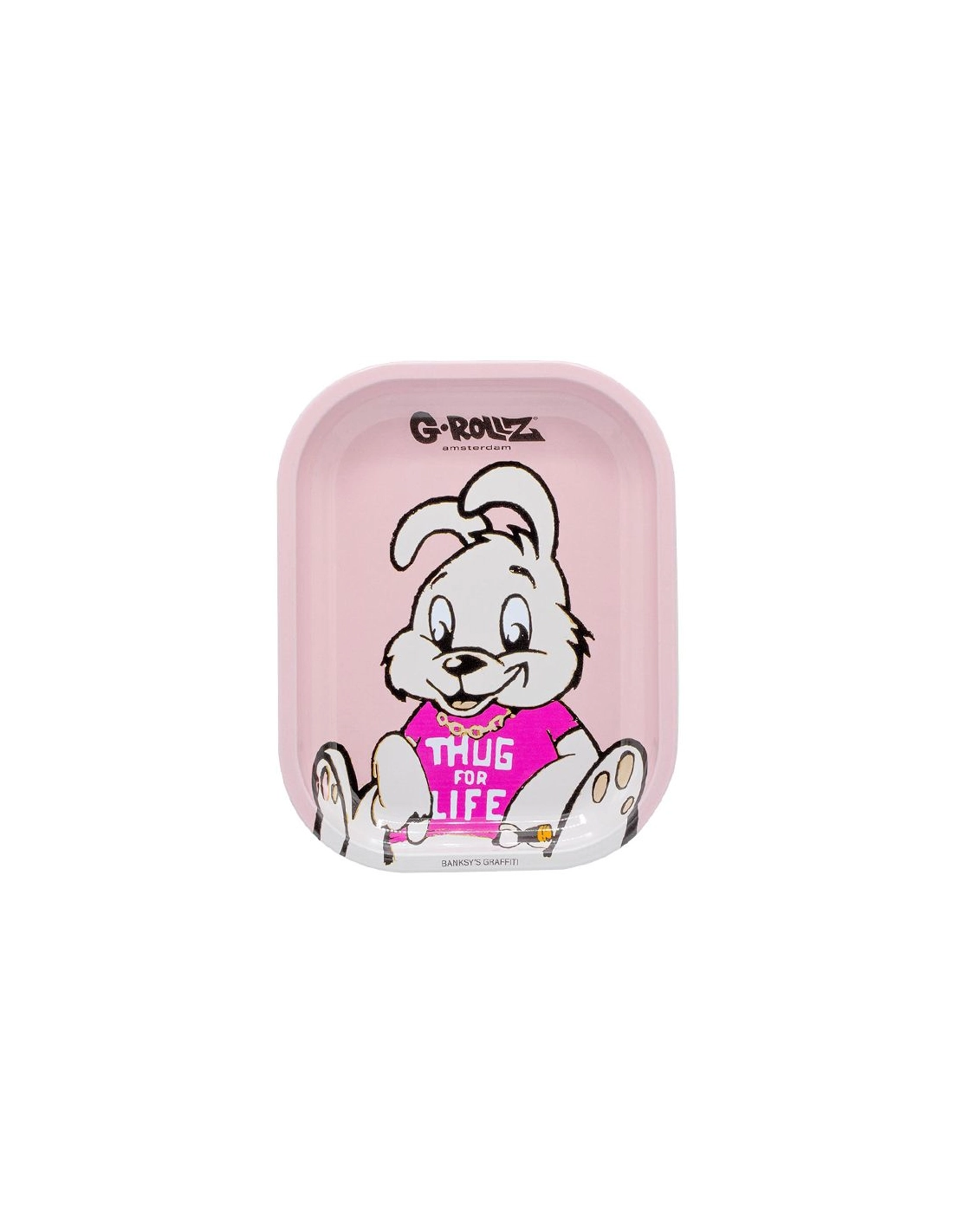 G Rollz Metall-Mix-Tablett mit dem Bild Hase trägt Thug for Life T-Shirt mit einer Größe von 14 x 18cm